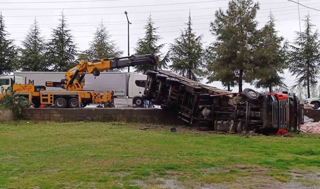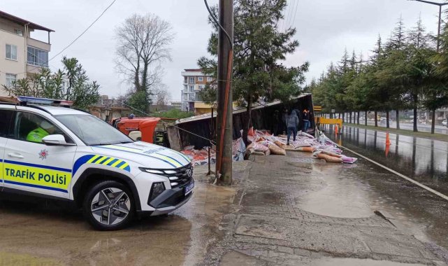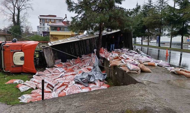 Ordu'nun Gülyalı ilçesinde besi yemi yüklü tırın kontrolden çıkarak devrilmesi sonucu meydana gelene trafik kazasında 1 kişi yaralandı.