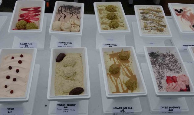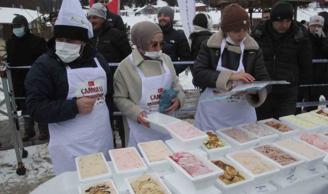 Yüzlerce farklı çeşit meyvenin yanı sıra yöresel ürünler, hamsi ve diğer balık çeşitlerinin de yer aldığı dondurmalar, Guinness Word Records Türkiye Hakemi ve Temsilcisi Şeyda Subaşı Gemici ve beraberindekiler, bin 301 çeşit dondurmada gerekli denetim ve tadımları yaptı.