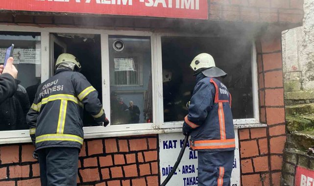 Ordu'nun Ünye ilçesinde emlakçı dükkanında çıkan yangında iş yeri küle döndü.