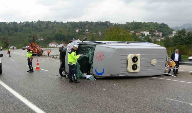 Ordu'da hasta nakil araç devrildi: 1 yaralı