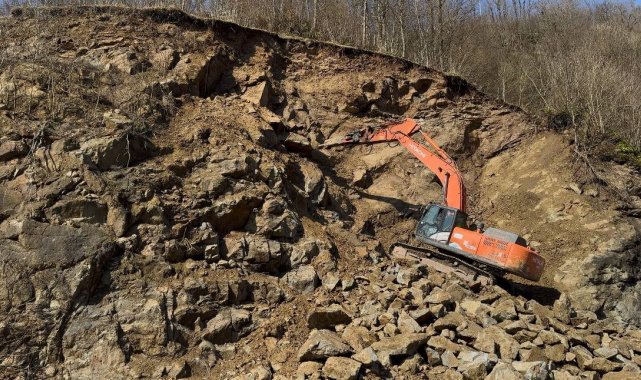 Ordu'da heyelan nedeniyle kapanan yol, kontrollü olarak ulaşıma açıldı