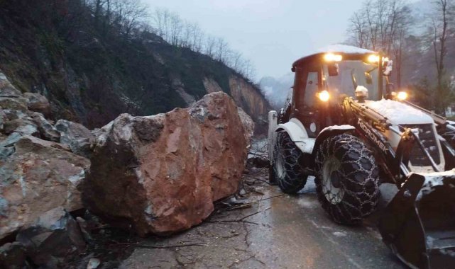 Ordu'nun Altınordu ilçesinde heyelan nedeniyle ulaşıma kapanan yol, çalışmaların ardından yeniden ulaşıma açıldı.