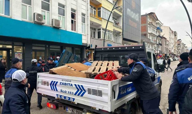 Ordu Büyükşehir Belediyesi Zabıta Müdürlüğü ekipleri tarafından kaldırımları işgal eden malzemeler toplandı.