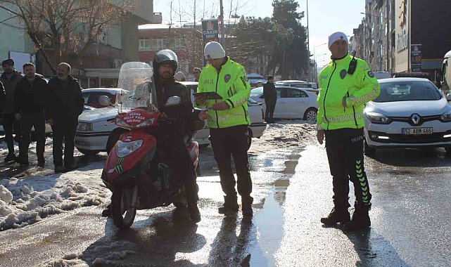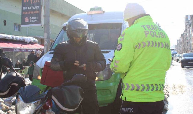 Denetimlerde, kar yağışı nedeniyle özellikle motosiklet sürücülerinin plakalarının görünmemesi üzerine ekipler tarafından sürücülere uyarılar yapıldı. Plakası okunmayan motosikletlerin, plakayı okunacak hale gelmeden geçişlerine izin verilmezken, denetimlerde cep telefonuyla konuşan bir sürücüye ve sigortası olmayan motosiklet sürücüsüne toplamda 2 bin 266 lira cezai işlem uygulandı.