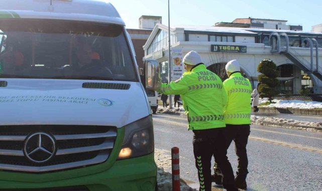 Ünye İlçe Emniyet Müdürlüğü Trafik Tescil ve Denetleme Büro Amirliği ekipleri tarafından dolmuş, servisler ve motosiklet sürücülerine yönelik demetim yapıldı. Yapılan denetimlerde ekipler, sürücülerin ehliyet ve ruhsatlarını kontrol ederken, trafikte yaşanması muhtemel kazalara karşı uyarılarda bulundu.