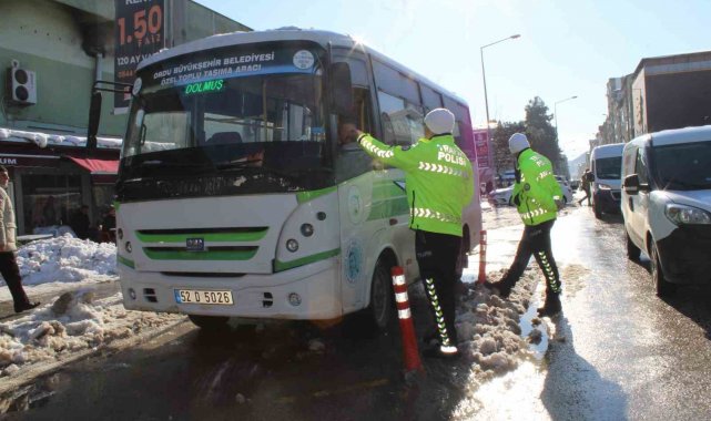 Ordu'nun Ünye ilçesinde polis ekipleri tarafından kar yağışı sonrası geniş çaplı trafik denetimi gerçekleştirildi.