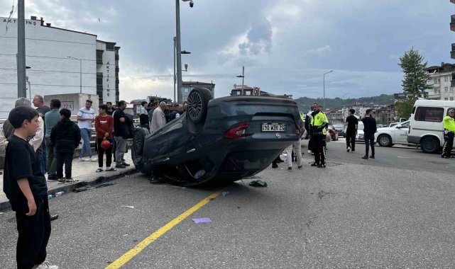 Ordu'nun Ünye ilçesinde iki otomobilin çarpıştığı kazada araçlardan biri takla attı. Kazada 5 kişi yaralandı.