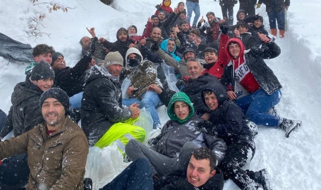 Ordu'nun Kumru ilçesindeki iş insanları ve esnafların öncülüğünde sosyal medya üzerinden toplanan vatandaşlar, kar yağışının keyfini kendi imkanları ile oluşturdukları kayak merkezinde çıkardı.