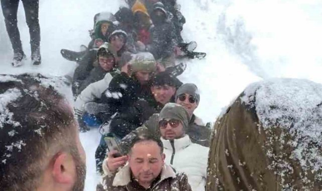 Eğlencede yaklaşık 150 kişinin tek seferde kızak ve poşetler yardımıyla birbirilerinden destek alarak kayması renkli anlara sahne olurken, sonrasında ise katılımcılar kızak ve poşetler yardımıyla teker teker kaydı. Etkinlik, gün boyu devam etti.