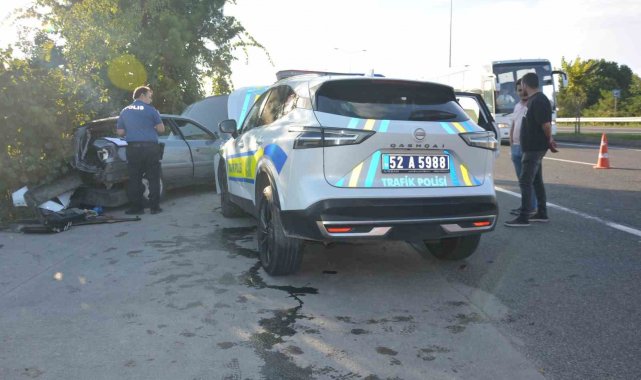Ordu'da kontrolden çıkan otomobil, polis otosuna çarptı: 2 yaralı