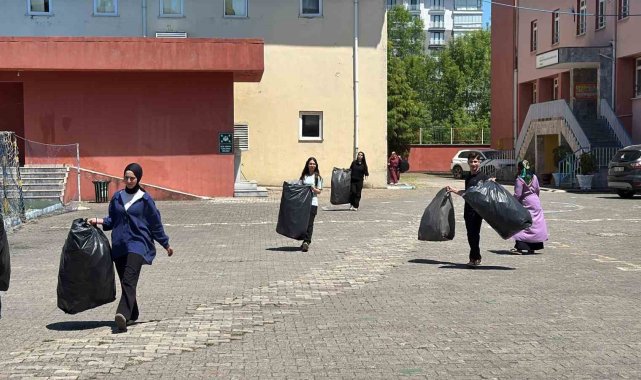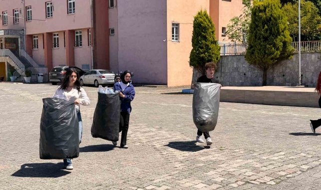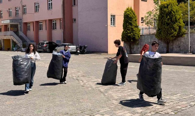 Ordu'nun Ünye ilçesinde lise öğrencileri çevre duyarlılığı bilinciyle biriktirdikleri pet şişeleri geri dönüşüme kazandırdı.