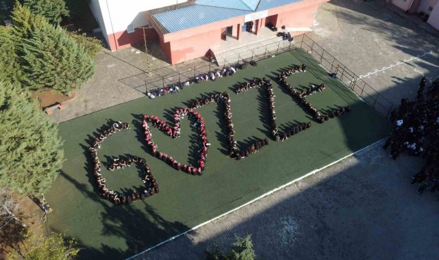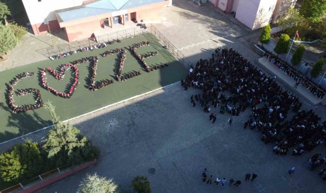 Ordu'nun Ünye ilçesinde bin 56 öğrenci, İsrail'in Gazze'ye yönelik saldırılarına dikkat çekmek için okul bahçesinde bedenleriyle "Gazze" yazısı oluşturdu.