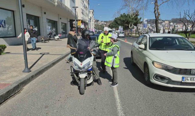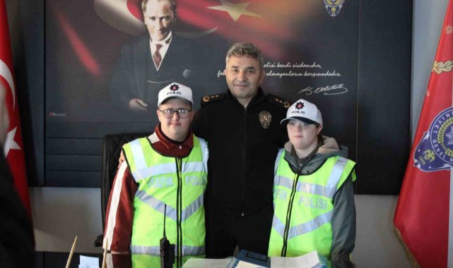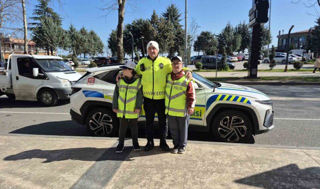 Ordu'nun Ünye ilçesinde özel öğrenciler, temsili olarak trafik polisi olup, denetime katıldı.