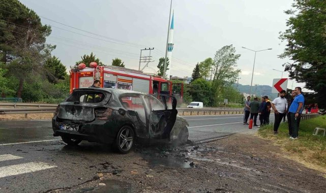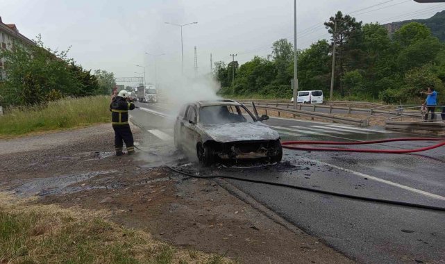 Ordu'da seyir halindeki otomobilde yangın çıktı