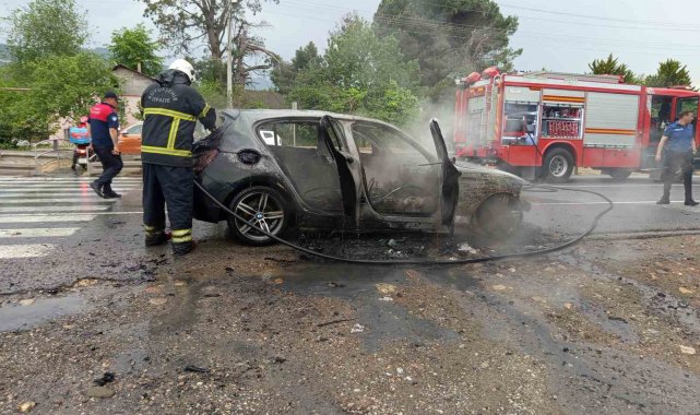 Yangın nedeniyle araç kullanılamaz hale gelirken, olayla ilgili inceleme başlatıldı.