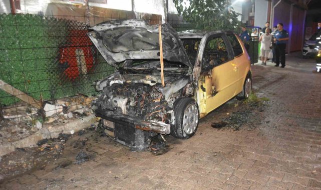 Ordu'nun Ünye ilçesinde tamir için bir iş yerinin önüne bırakılan otomobil, kimliği belirsiz bir kişi tarafından kundaklandı.