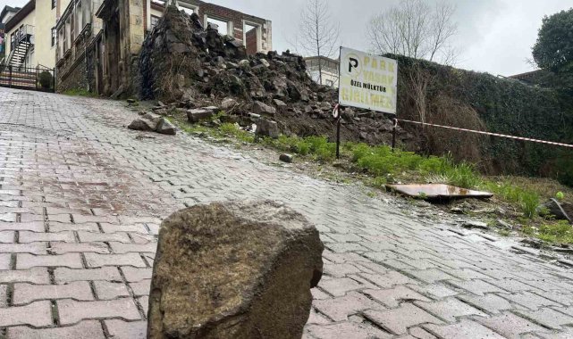 Ordu'nun Ünye ilçesinde etkili olan sağanak yağış, tarihi bir yapının istinat duvarının çökmesine neden oldu. Olayda park halindeki araçlarda hasar meydana geldi.