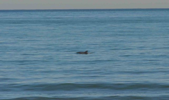 Yaklaşık bir saat boyunca kıyıya yakın sularda avlanan yunuslar, bir anda derin sulara dönerek yeniden gözden kayboldu.