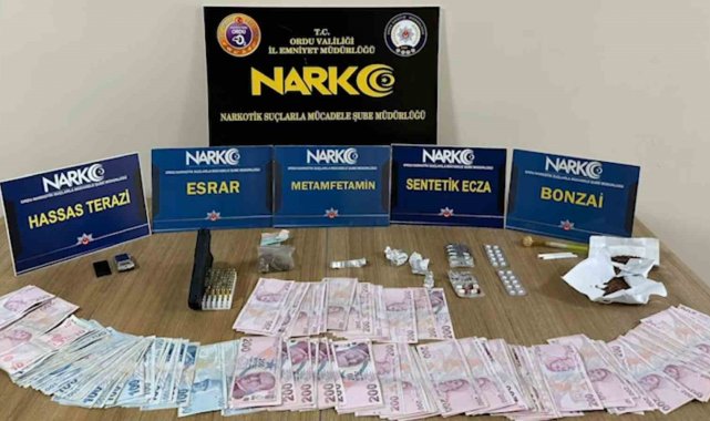 Operasyonda yapılan aramalarda 111,35 gram bonzai, 104 adet sentetik ecza hap, 64,13 gram metamfetamin, 6 adet ecstasy hap, 1,67 gram esrar, 2 adet hassas terazi, 35 bin 30 TL suçtan elde edildiği değerlendirilen para, 1 adet ruhsatsız tabanca ve 38 adet tabanca fişeği ele geçirildi.