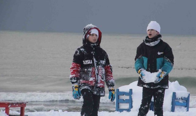 Ordu'da bir süredir etkili olan kar yağışı sonrası, güneşin yüzünü göstermesiyle ortaya kartpostallık görüntüler çıktı, sahilde insan kalabalığı oluştu.