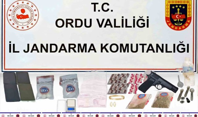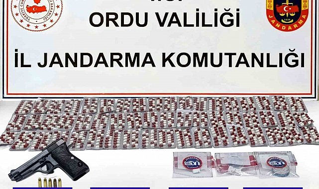 Ordu İl Jandarma Komutanlığı ekipleri tarafından uyuşturucu madde ile mücadele kapsamında, Narkotik Suçlarla Mücadele Şube Müdürlüğü, İstihbarat Şube Müdürlüğü, Ünye ve Fatsa İlçe Jandarma Komutanlıkları koordinesinde uyuşturucu madde imal ve ticareti ile kullanmak için uyuşturucu madde bulundurdukları tespit edilen şahıslara yönelik operasyon düzenlendi. Ekiplerin, Ünye ilçesinde M.C.K. (29), H.T. (46) ve S.S.K. (23) isimli şahısların üzerinde ve aracında yaptıkları aramalarda toplamda 756 adet sentetik ecza, 1 gram metamfetamin, 1 gram bonzai ham maddesi, 1 adet ruhsatsız tabanca, 5 adet tabanca fişeği, 3 adet cep telefonu ele geçirildi.