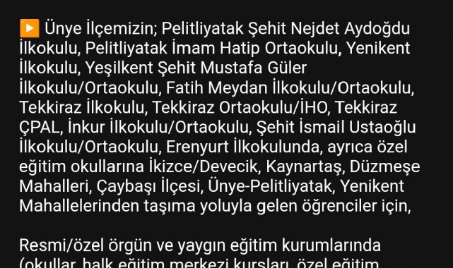 Ordu Valiliği, ilin iç kesimlerinde etkili olan kar yağışı ve buzlanma nedeniyle 9 ilçenin tamamında, 8 ilçede ise kısmi olarak eğitime 1 gün ara verildiğini duyurdu.