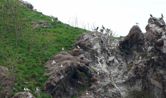 Türkiye'de, tepeli karabatak kuşlarının yuva yaptığı nadir bölgeden biri olan ve çift gümüş martıların yaşadığı Ordu'nun Perşembe ilçesindeki 'Hoynat Adası', Ramazan Bayramı tatilinde ziyaretçilerin beğenisini kazanıyor.