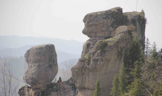 Ordu'nun 'peribacaları' noktasında tehlikeli kayalar ıslah edildi