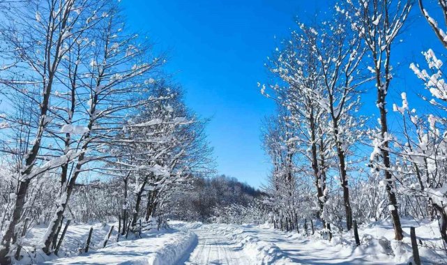 Ordu'nun yüksek kesimlerinde kar manzarası