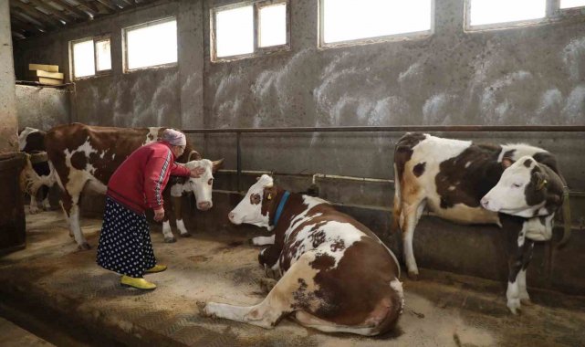 Mine Aydın, hayvancılıkta yeni yöntemlerle üretimde artış yaşadıklarını söyledi. Büyükşehir Belediyesi'nin desteklerinin kendilerine çok iyi geldiğini aktaran Aydın, "13 adet hayvanım var ve ben onları kızlarım diye seviyorum. Hayvancılıkta en büyük giderlerden bir tanesi kaba yemdir. Bunu da 2 yıldır Büyükşehir Belediyemizin bize verdiği 5'li karışım kaba yem ile hafifletmeye çalışıyorum. Ben büyükşehir Belediyemize çok teşekkür ediyorum. Bize verilen bu yemlerle arazilerimiz boş kalmıyor ve yem bitkileri ekiyoruz. Kışında hayvanlarımıza bu yemi veriyoruz. Hayvanlarda bu yemleri çok severek tüketiyor. Bunun yanı sıra bu yem ile birlikte hem sütün miktarı hem de kalitesi artış gösteriyor. Ben şuanda siparişlerime yetişemiyorum. Günlük 170 litrenin üstünde süt üretiyorum. Büyükşehir Belediye Başkanımız Dr. Mehmet Hilmi Güler'e bize verdiği tüm bu destekler dolayısıyla çok teşekkür ediyorum" dedi.