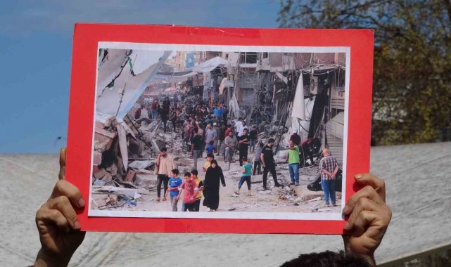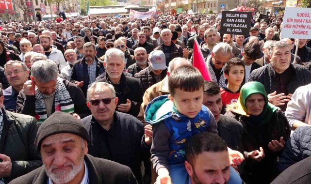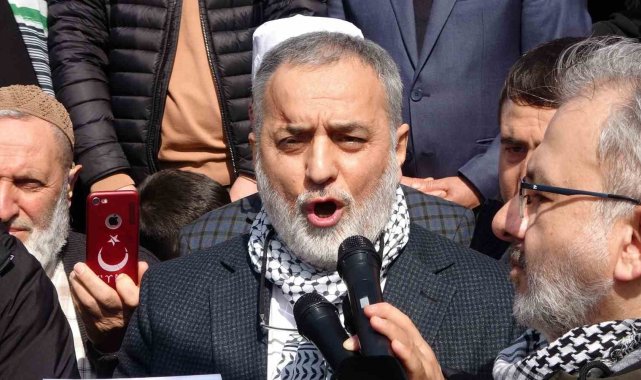 Topluluk burada İsrail aleyhine sloganlar atarak boykot çağrısı yaptı, şehit olanlar için dua etti.