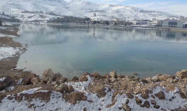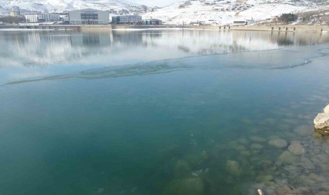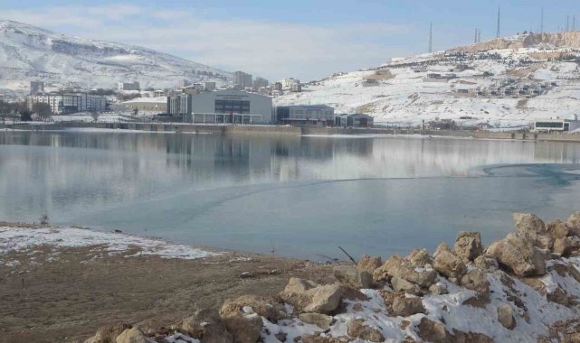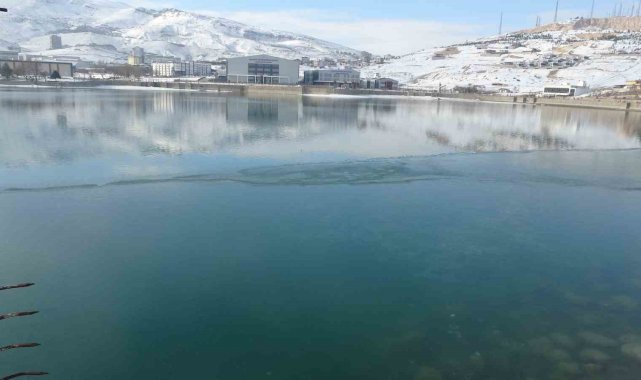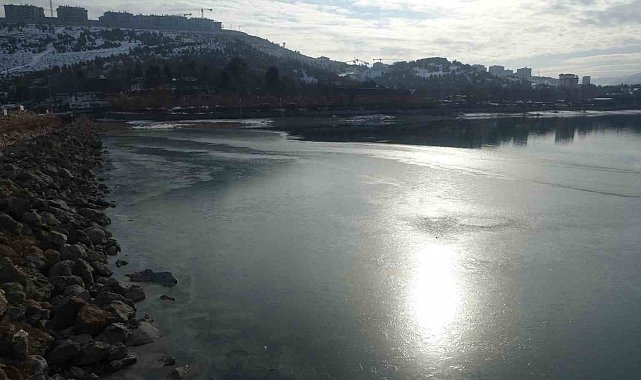 Malatya'da, soğuk hava nedeniyle Orduzu Göleti'nin bazı bölümlerinin yüzeyi buzla kaplandı.
