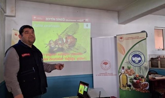 Çanakkale İl Tarım ve Orman Müdürlüğü tarafından Bitkisel Üretim Genel Müdürlüğü (BÜGEM) tarafından desteklenen "İyi Tarım Uygulamalarının Yaygınlaştırılması ve Kontrolü Projesi" ile "Organik Tarımın Yaygınlaştırılması ve Kontrolü" projeleri kapsamında Ezine Akköy köyündeki zeytin üreticilerine İl ve ilçe Tarım Müdürlüğü Teknik Personeli tarafından eğitim düzenledi.