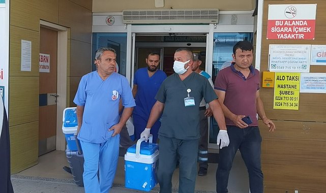 "Hastanemiz genel yoğun bakım ünitesinde tedavi görmekte olan 62 yaşındaki Abdulaziz Çakmak'ın beyin ölümü gerçekleşmesi sonucu yakınlarıyla yapılan aile görüşmesinde, organ nakli hakkında bilgilendirme yapılmıştır. Aynı zamanda organ bağışçısı olan hastamızın ailesi de örnek bir duyarlılık göstererek organ bağışına onay vermiştir. Organ nakli süreci yasal mevzuat ve etik kurallar çerçevesinde hastanemiz organ nakli kooordinasyon ekibi tarafından hızlı ve büyük bir titizlikle yürütülmüştür. Süreç sonucunda bağışlanan organlar Bursa ve Ankara illerinde dört ayrı hastaya umut olmuştur."