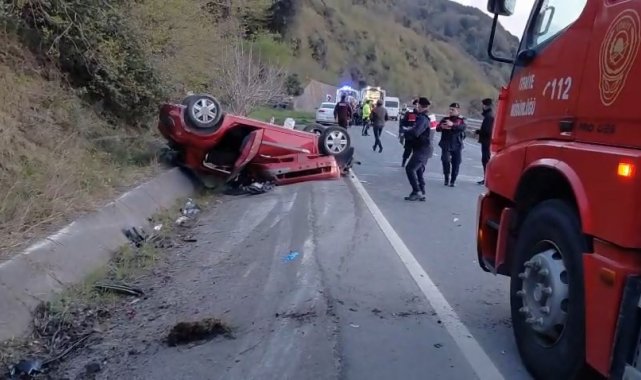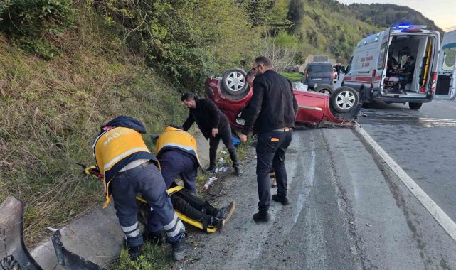 Zonguldak'ın Alaplı ilçesinde Orman İşletme Şefliği personelini taşıyan otomobilin takla attığı kazada 3 kişi yaralandı.