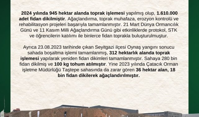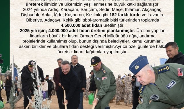 Ayrıca Orman Bölge Müdürlüğüne bağlı ekipler tarafından, 2024 yılında 182 farklı türde 4 milyon 500 bin fidan üretimi gerçekleştirildiği, 2025 yılı için 4 milyon fidan üretiminin planlandığı belirtildi.
