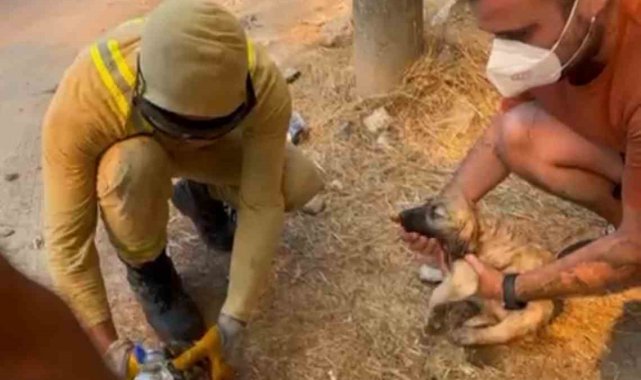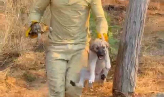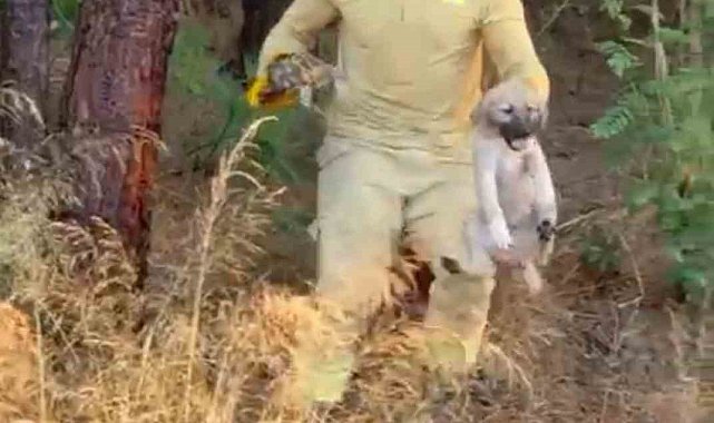 Yangına müdahale sırasında bir orman işçisi ise alevlerin içinden kaplumbağa ve köpek yavrusunu kurtardı. Orman işçisi kaplumbağa ve köpek yavrusunu alevler arasından kurtardıktan sonra onlara diğer gönüllülerle beraber su içirdi.
