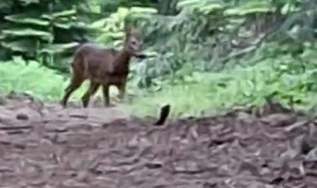 Görüntülerde, Demir'in karacaya olan hayranlığını gizleyemediği ve şaşkınlıkla izlediği anlar yer aldı.