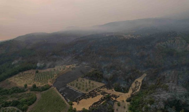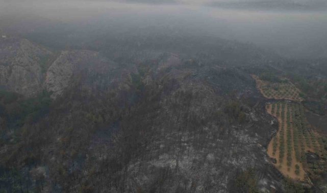 Yangının hasarı gün yüzüne çıkmaya başlarken, bazı yanan bölgeler dron ile havadan da görüntülendi.
