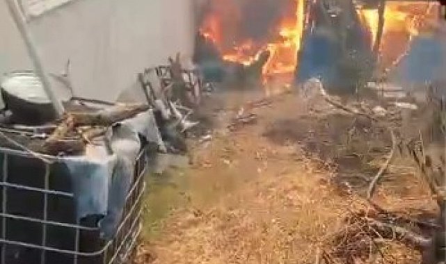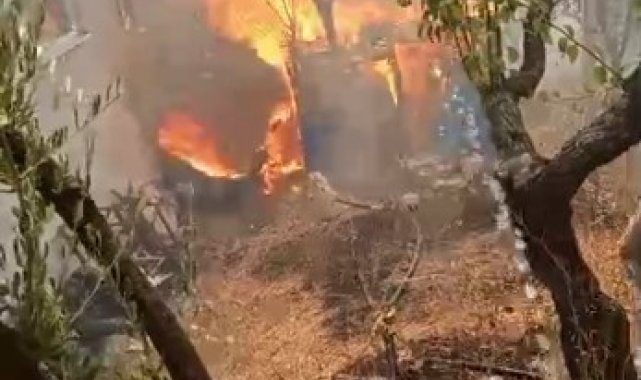Kocaeli'nin Karamürsel ilçesinde çıkan ve kontrol altına alınmaya çalışılan orman yangını, bazı noktalarda yerleşim yerlerine sıçradı. Alevlerin sirayet ettiği bir evi cep telefonuyla görüntüleyen vatandaşın, "Kaç, artık hiçbir şey yapamayız" dediği duyuldu.
