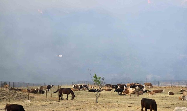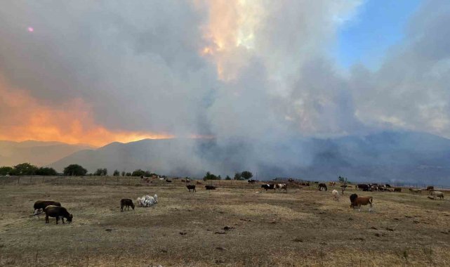 Orman yangını köye yaklaştı, hayvanlar güvenli alanda bekletiliyor