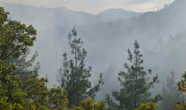 Bölgede yangında 5 helikopter, 6 arazöz ve itfaiye, 4 su tankı, 4 iş makinesi ile orman işçilerinin de olduğu 110 personelin müdahale ettiği öğrenildi.