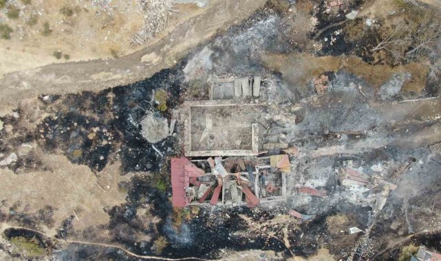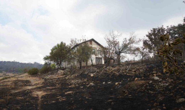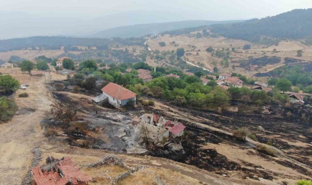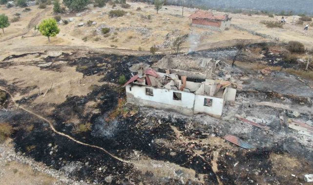 Orman yangının sıçradığı köydeki hasar görüntülendi: Evler metreler kala kül olmaktan kurtarılmış