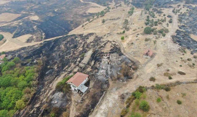 Kastamonu'nun Araç ilçesindeki orman yangınının sıçradığı köydeki hasar, havadan görüntülendi. Köyde yaşayan vatandaşlar, ekiplerin müdahalesiyle evlerinin yanmaktan kurtarıldığını söyledi.