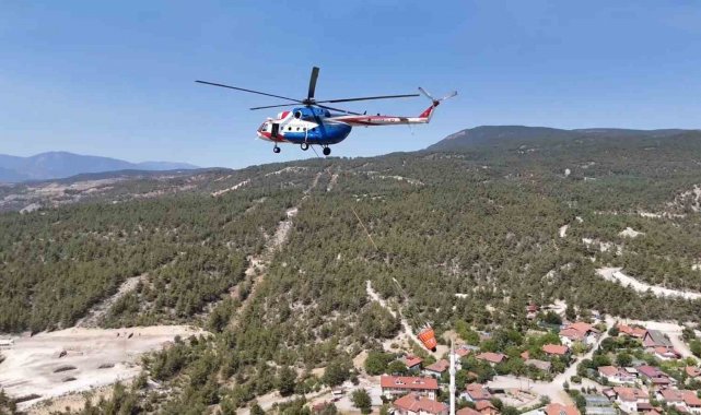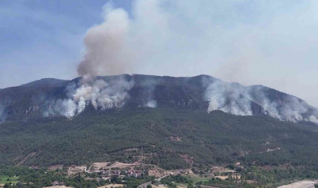 Merkez ve çevresindeki köylerde etkili olan yangına ekiplerin karadan müdahalesi sürüyor. Arazinin sarp ve ulaşımı güç olması nedeniyle bazı bölgelere ulaşmakta zorluk yaşanıyor.