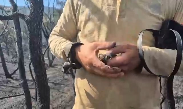 Orman yangınında hayatta kalan kuş böyle kurtarıldı