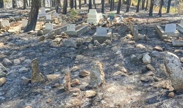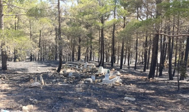 Orman yangınında mezarlık yandı, alevler Işık Dede'nin kabrinde durdu