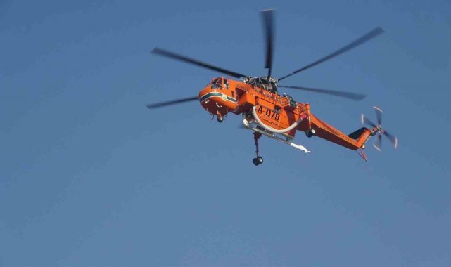 Orman yangınında uçaktan atılan su gökkuşağı oluşturdu