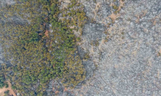 Orman yangınının ardından ortaya çıkan acı manzara böyle görüntülendi