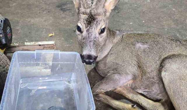 Ormanda kar nedeniyle aç kalıp şehre inen karacayı köpeklerin saldırısından belediye çalışanları kurtardı